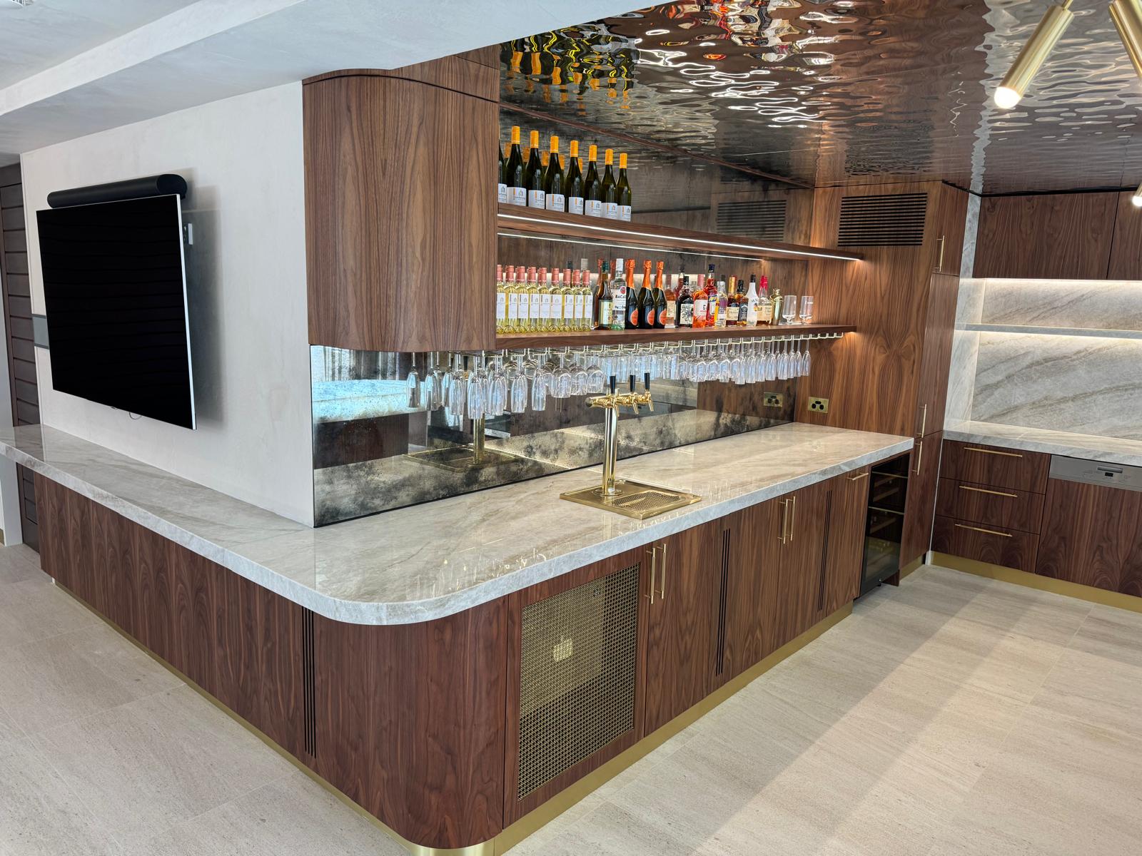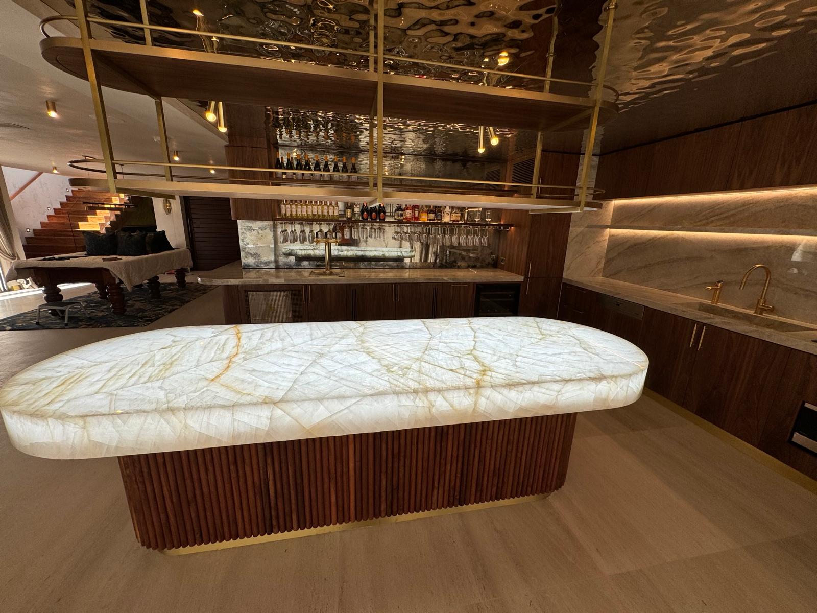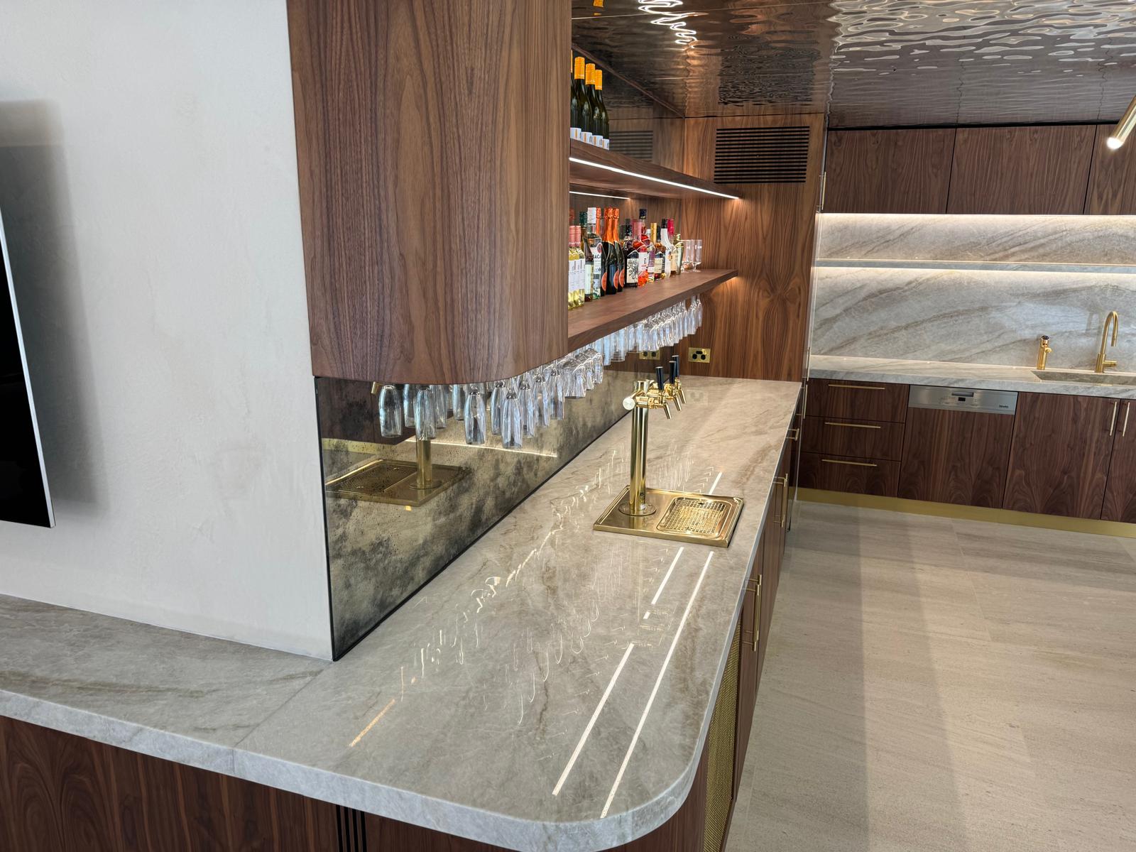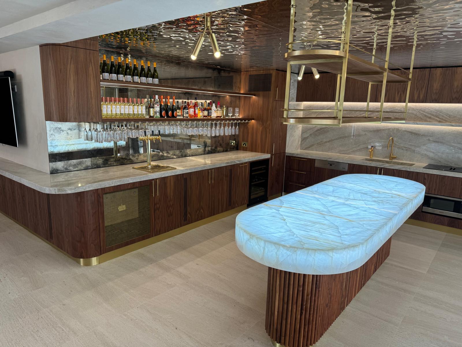 Stonen Fabrication, recently completed a high-end project in Clontarf, NSW, featuring stunning Taj Mahal quartzite benchtops and a luxurious white Onyx island with backlighting. The Taj Mahal stone was meticulously selected for its elegant, warm tones and intricate veining, providing a sophisticated and timeless look for the kitchen benchtops. The centerpiece of the space is the backlit white Onyx island, which creates a breathtaking focal point with its translucent qualities and soft glow, enhancing the ambiance of the entire room. This project not only showcased the exquisite beauty and versatility of natural stone but also demonstrated the precision and craftsmanship required to deliver a flawless installation in a residential setting.